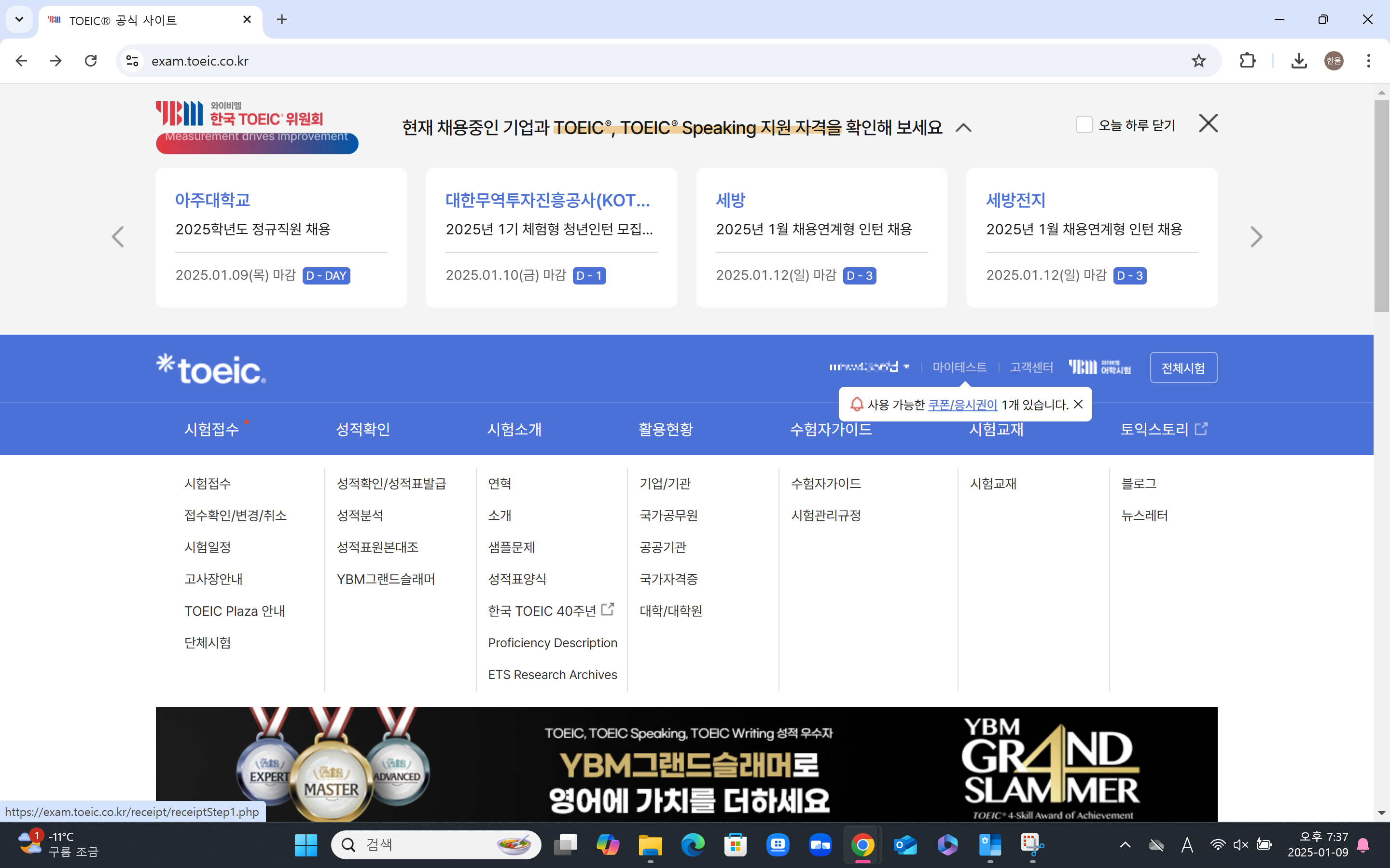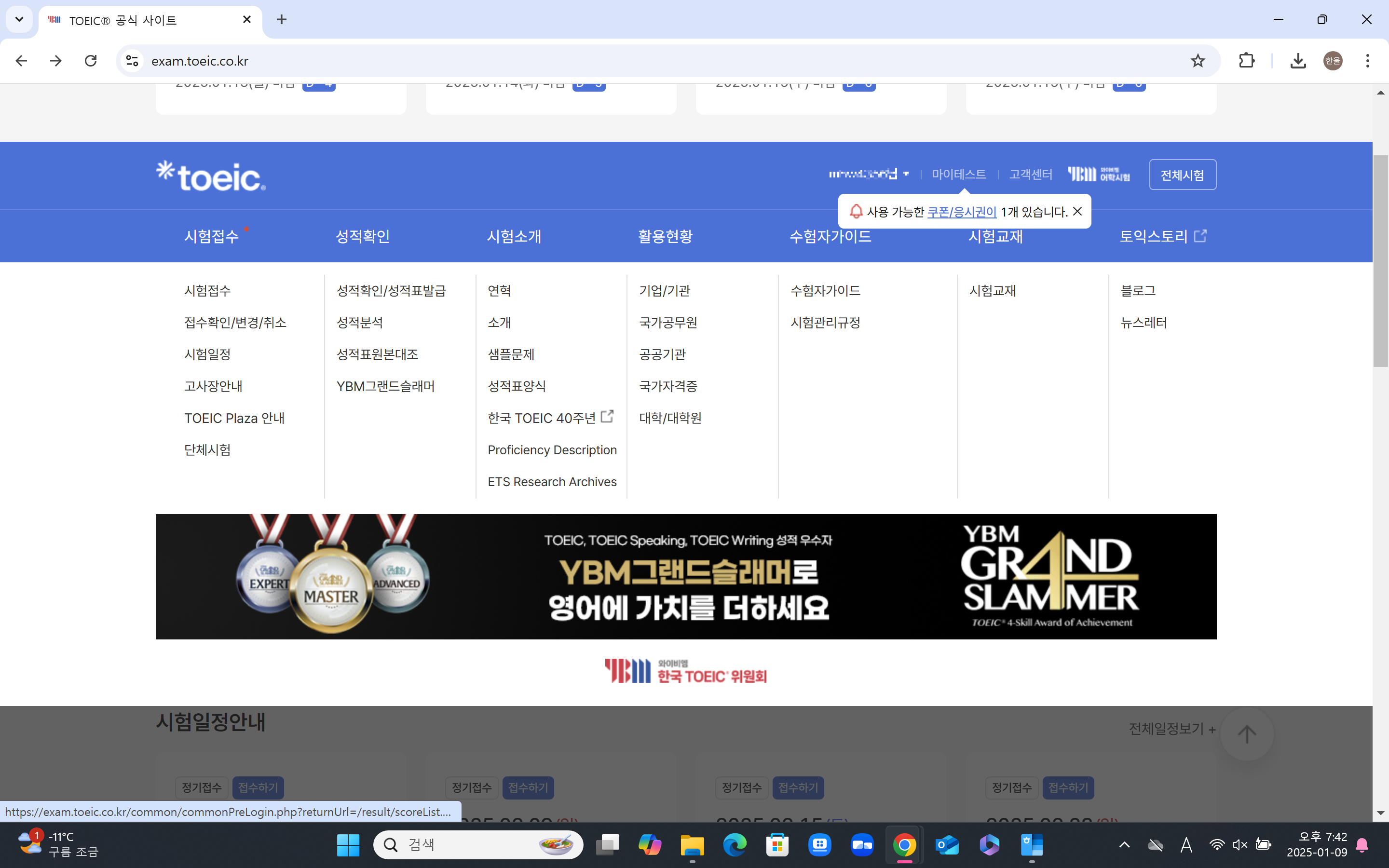 STEP 1: YBM 토익 홈페이지 로그인