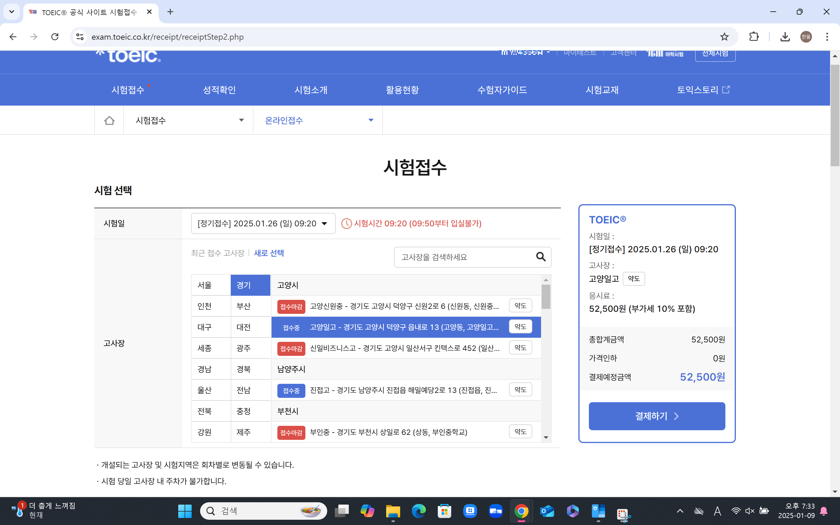 - "시험 접수" 메뉴에서 원하는 시험 일정과 지역을 선택하세요.