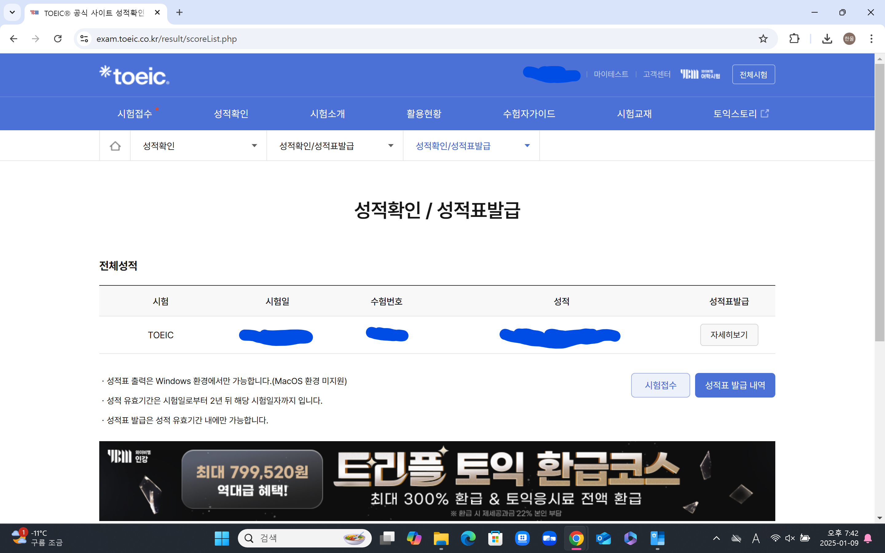 3. 토익 성적표 발급 방법